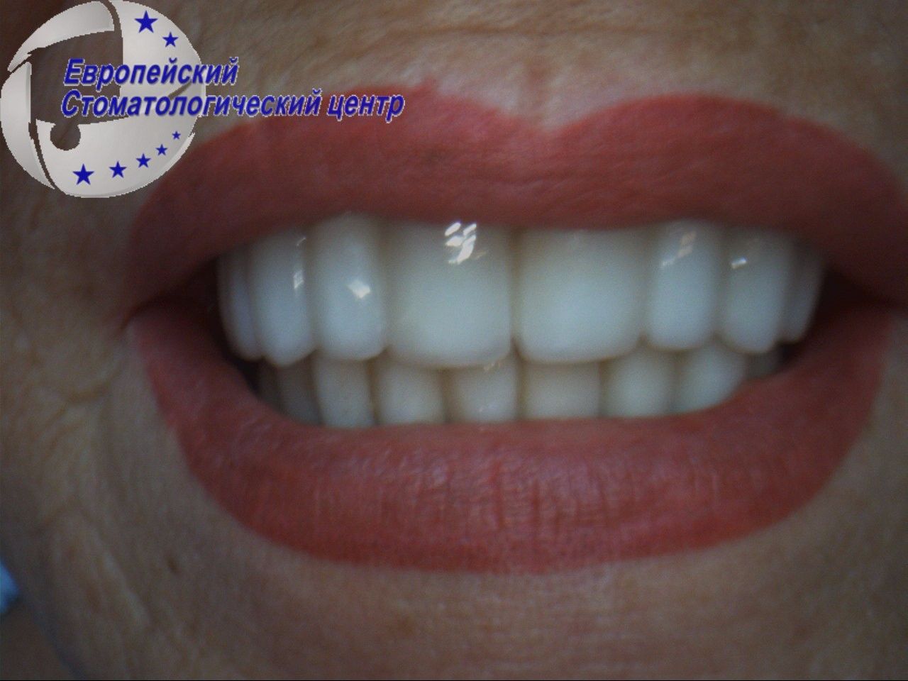 A patient came to the European Dental Center complaining of a complete absence of teeth in the upper jaw. Despite the complexity of the anatomical and topographic conditions, namely the lack of bone tissue in the upper jaw, 10 implants were installed. Thanks to minimally invasive surgery, she managed to put on the third day a non-removable temporary structure, returning her chewing and partially aesthetic functions.